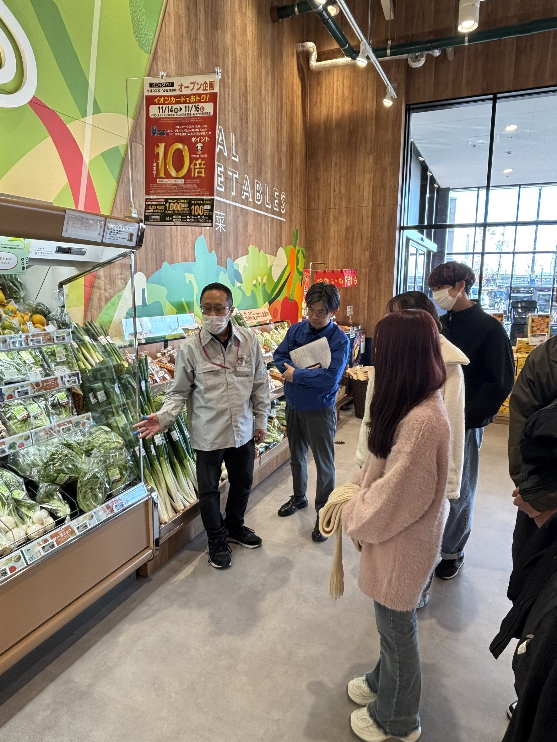 11月の第2回では、新しくできた三条のイオンを訪れ、スーパーの見学を行いました。